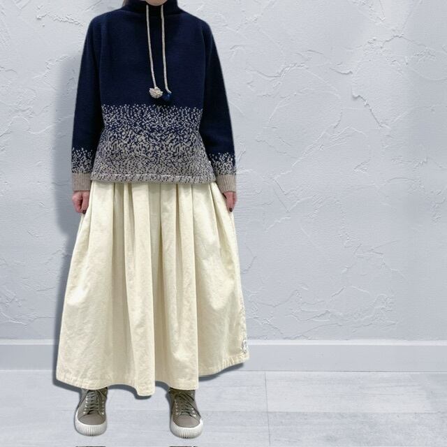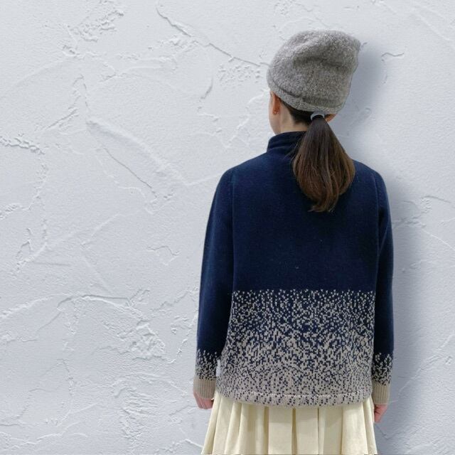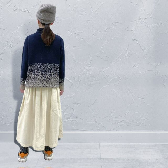 着丈はお尻が隠れるくらいです。柄の位置や配色でvmらしい遊び心を込めたニットです。