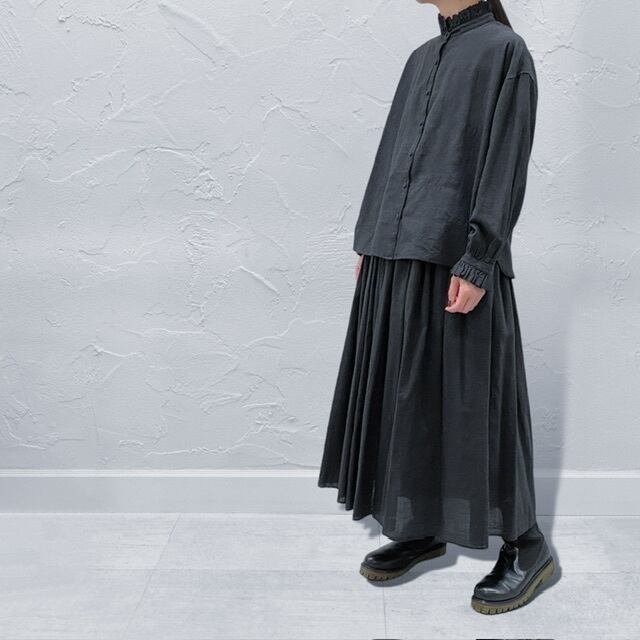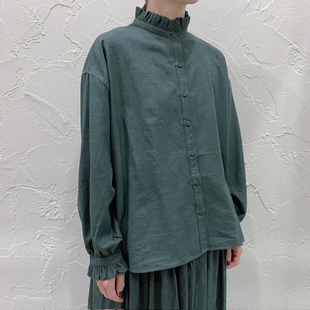 maison de soil "WOOL COTTON SILK PLAIN" シリーズのフリルカラーシャツ。