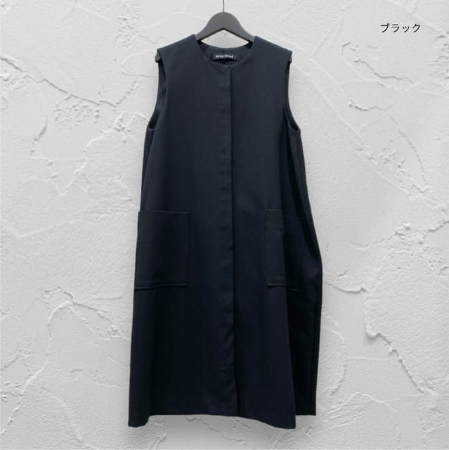 前を開けてジレとしても着用可能でコーディネートの幅が広く清楚な装いで素敵におしゃれを楽しんでいただける魅力のジレワンピースです。
