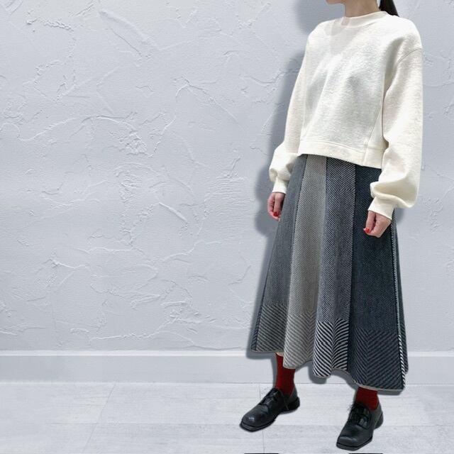 全体を扇上にヘリンボーン柄が入っていて、スカート下部分は太いヘリンボーンになってます。