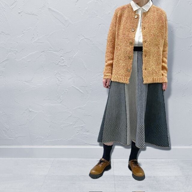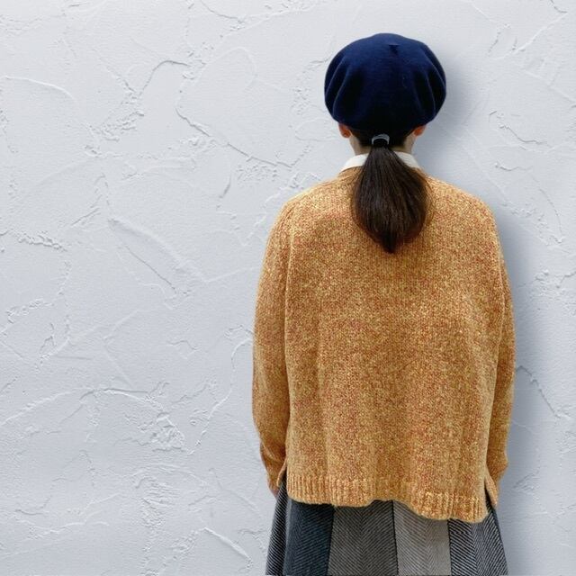 甘撚りウール混の3ゲージを使用した、ローゲージカーディガンです。