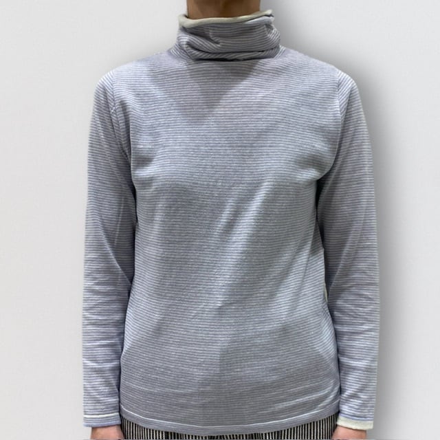 柄に抵抗のある方でも着ていただけたらと思い、一見無地にみえるような細いボーダーで作りました。