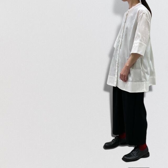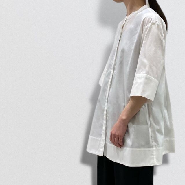 mizuiro ind人気の商品でもあるスタンドカラーAラインシャツです。