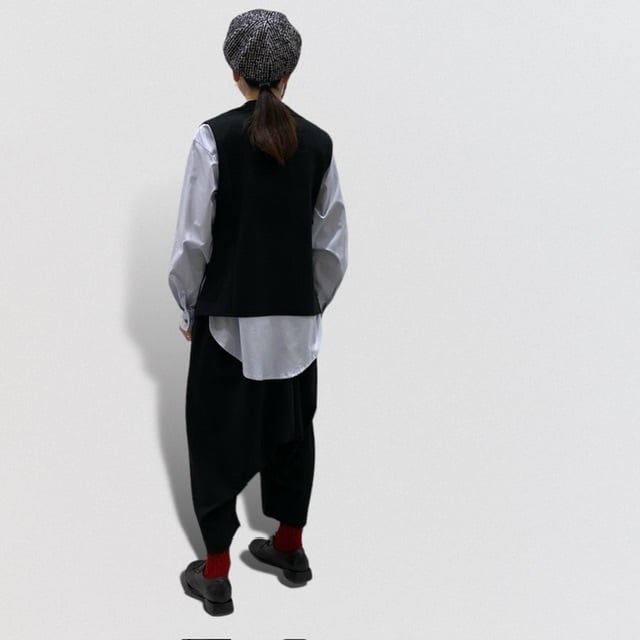 ダブルブレスとテーラーカラーの清楚な雰囲気も魅力的。きちんと感のある着こなしを表現した大人のベストとなっています。