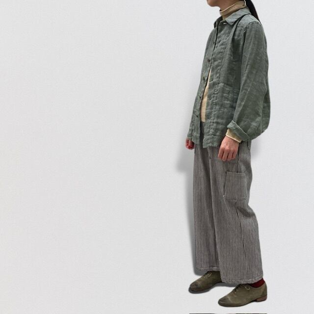 洗いざらしのリネンが気持ちよく、季節を問わずに着用しやすい素材です。