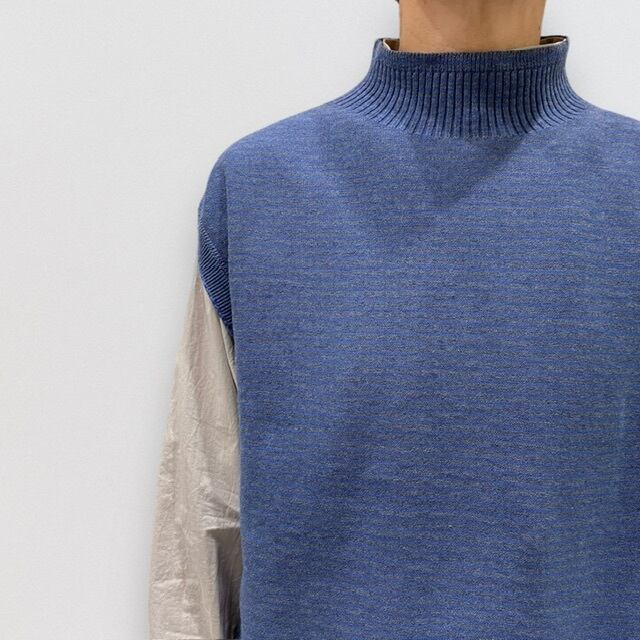 肌触りの良いコットンを同系色のソリッド糸×TOPボーダーで作ったベストです。