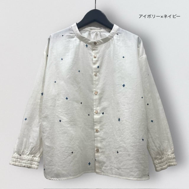 ダブルガーゼにnumeオリジナルのヒイラギ花柄をプリントしました。