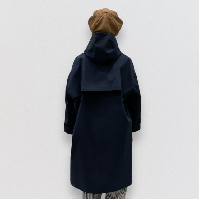 後ろから脇へ包み込まれるようなバックテイルのシルエットと少し広めのお袖幅がポイント。