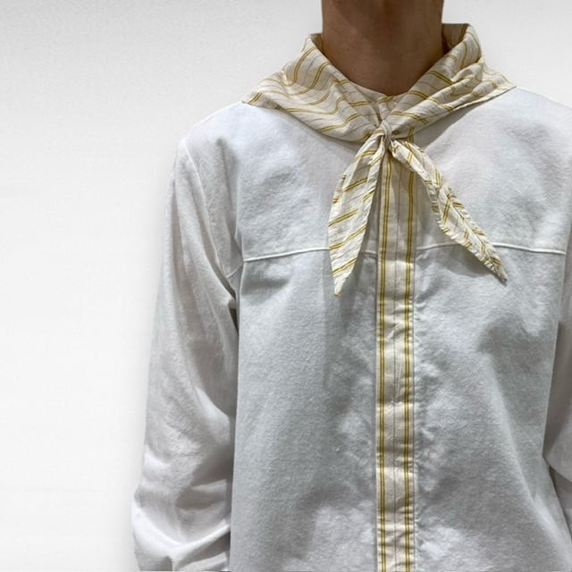 スカーフは、単独でもお使い頂けることも考え、薄手でハリのある綿麻素材です。