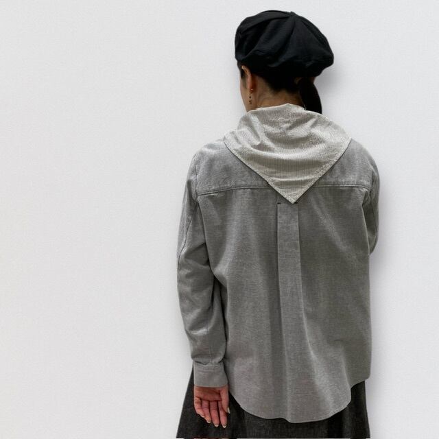 素材は、エコ素材のオーガニックコットンを使用したソフトな肌触りのビエラ素材と、スカーフ部分はハリ感のある綿麻素材を選び、バランスをとった組み合わせに。
