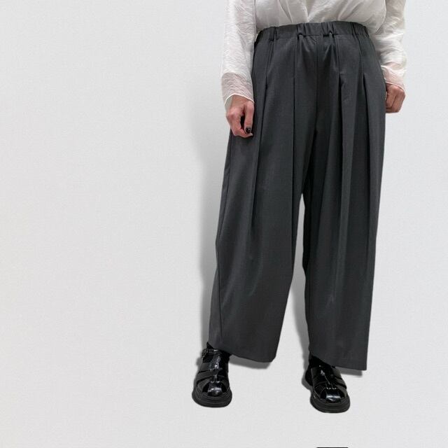 ロングセラーで長く愛されてるワイドパンツで前後に施したタックが動きのあるシルエットを表現しています。