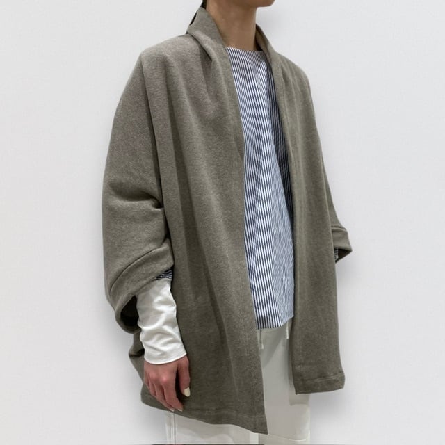 ドルマンや袖が広めのトップスの上からも気軽に羽織れるます。