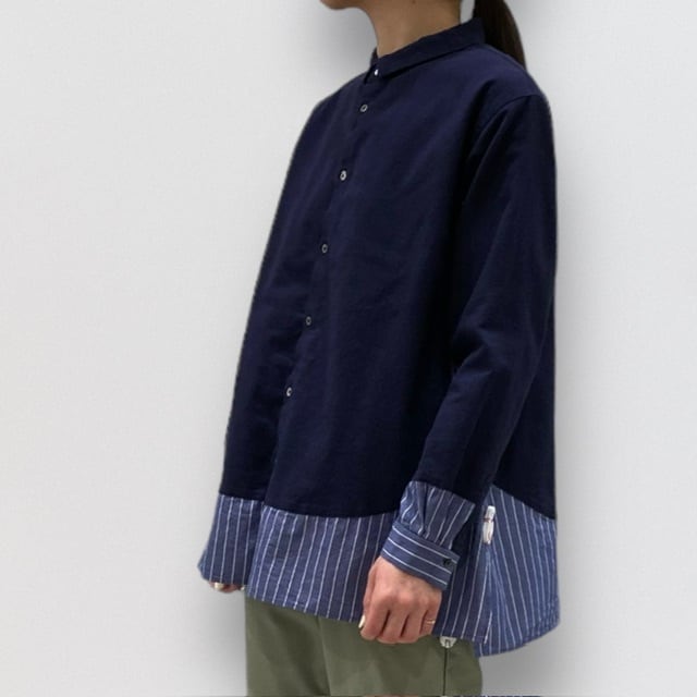 大胆に生地の切り替えを作り、前後左右どこから見てもデザイン性の高さを見ることのできるチュニックです。
