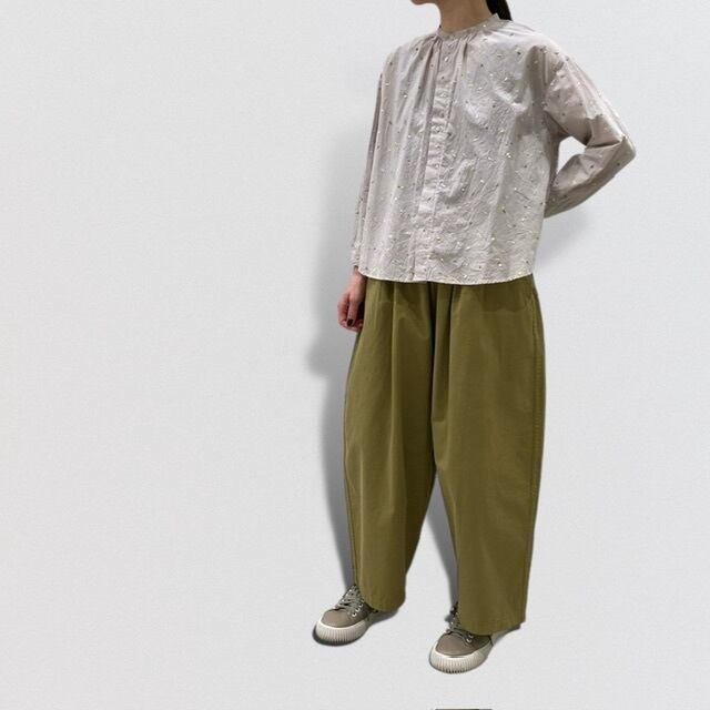 ギャザーをたっぷりとった膨らみのあるシルエットは腰回りを拾わないサイズ感に調整。