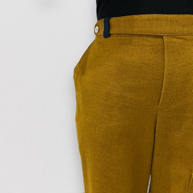 国産の色ムラを活かした生地を使用したパンツになります。
