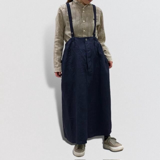 コルトレイクリネン糸の中でも最も安定した番手の糸を使い、中白染めで異なる2色のネイビーを使用しています。