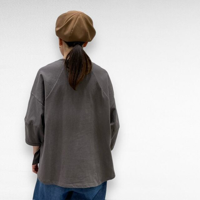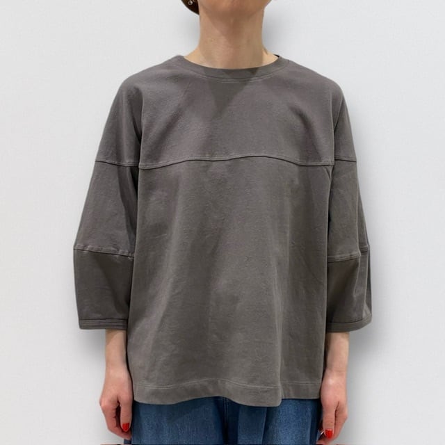 ゆったり身幅に袖部分の切替デザインがアクセントになり、シンプルながらオシャレ感もある1着。