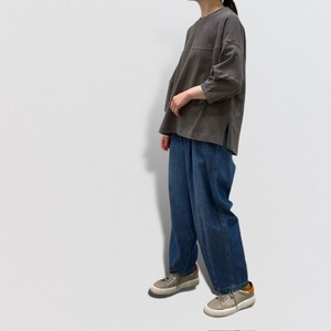 製品染め加工によるヴィンテージ感のある色合いが、こなれた雰囲気に。