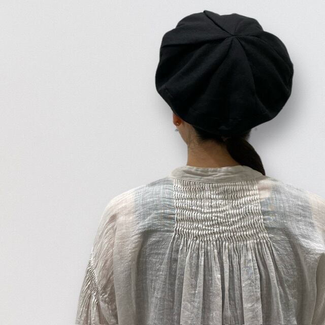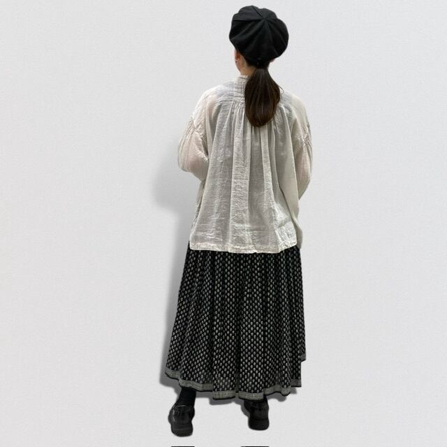 前から見るとシンプルなデザインですが、後ろ身頃や袖付け部分、袖口にピンタックを施し、細部にこだわりを散りばめました。