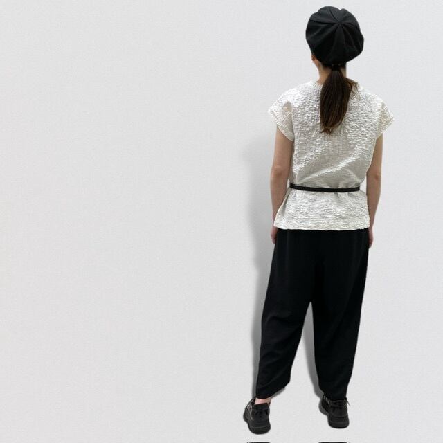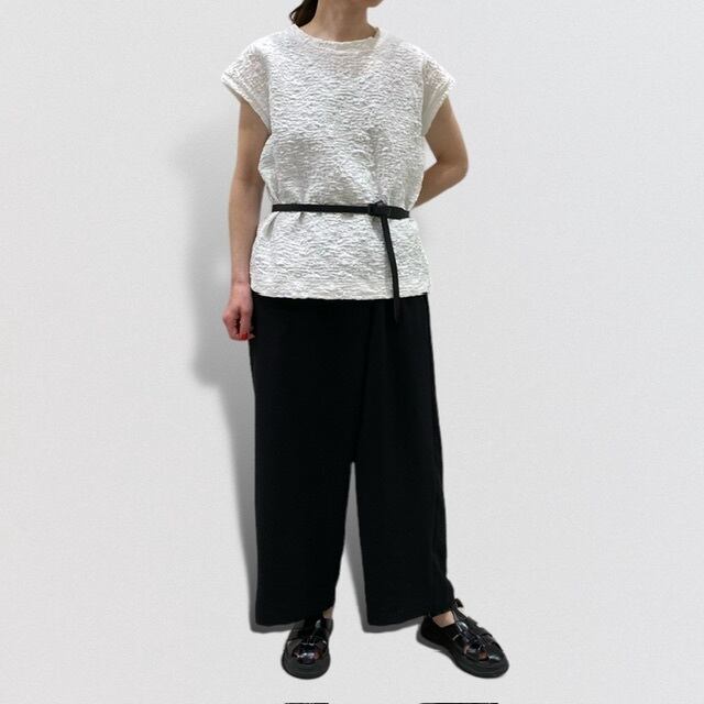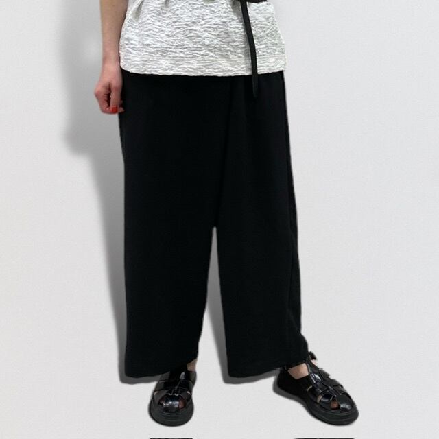 表面に凹凸のあるドライツイル素材を使用したラップライクイージーパンツ。