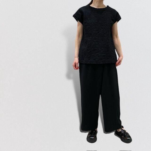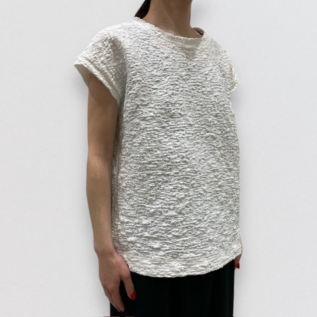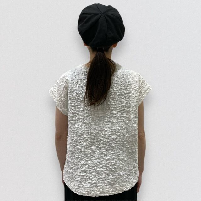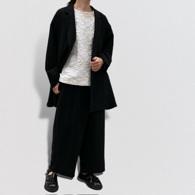 凹凸の表面の生地感が印象的でシンプルに着こなせ雰囲気のある1枚。