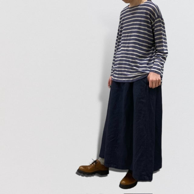 リネンカットソー特有の涼しさと上品なドレープが特徴的です。