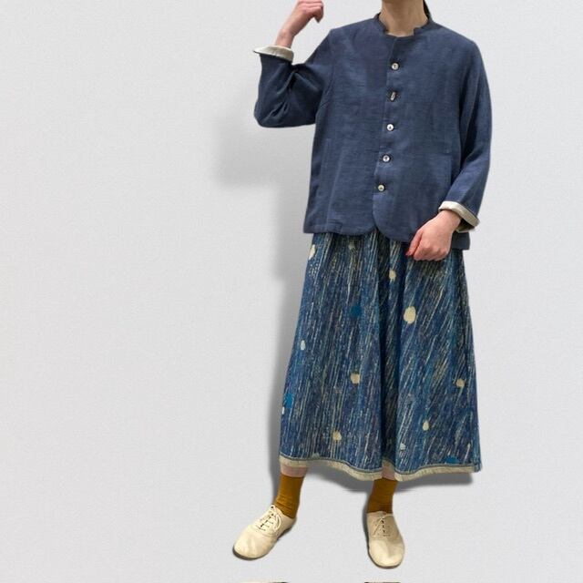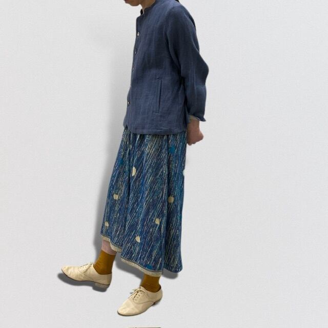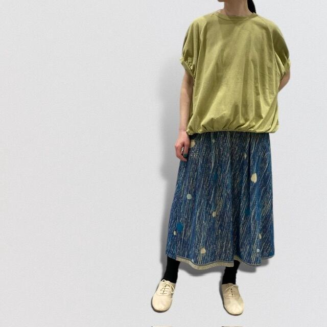 前裾とウエストに生地を裏使いしてポイントになってます。