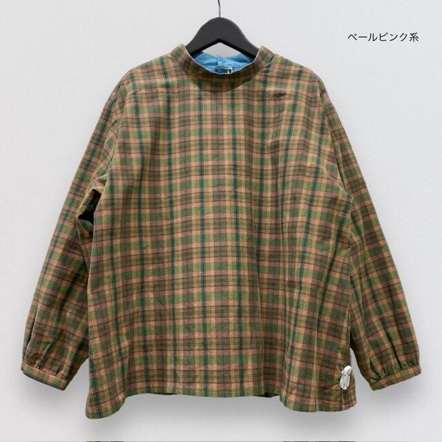 チェック生地はたて糸に60番単糸を使用し、よこ糸にムラ糸を使用することで、細番手の繊細さとムラ糸の粗野感が調和され、洗いざらし感のある風合いに仕上げています。