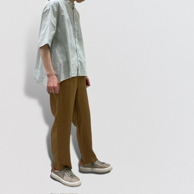 リネン生地を使用し、程よい光沢感と着こむほどにしなやかな風合いが出るためオンオフ問わず合わせることができます。