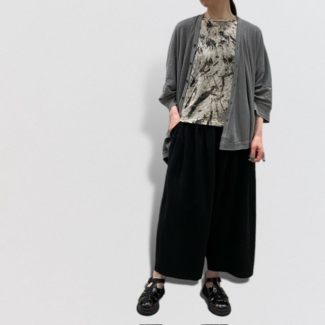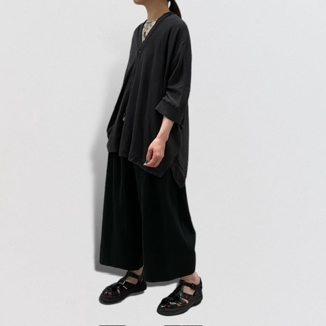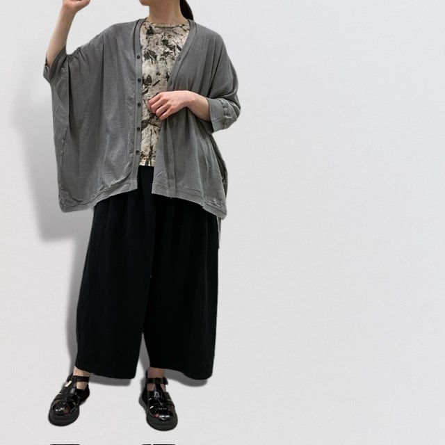 ゆったりシルエットなので、中のブラウスやTシャツの袖がボリュームあるドルマンスリーブやドロップショルダーでも、もたつかず羽織っていただけます。