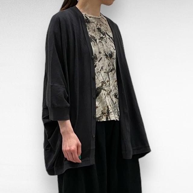ポンチョのようにゆったりしたシルエットのカーディガン。