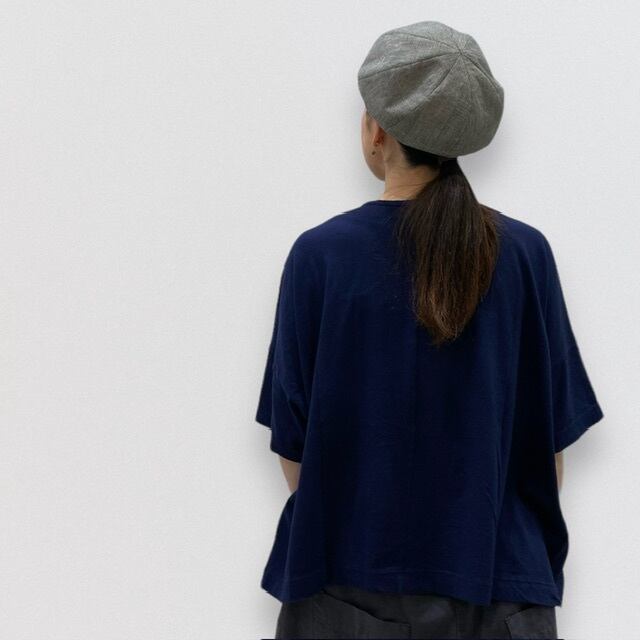 天竺素材に、ナチュラルなムラが生み出す独特なヴィンテージ感のある大正紡績㈱のラフィ糸と、肌触り良い30/-コーマ糸を組み合わせて、それぞれの個性の良さを引き出した。