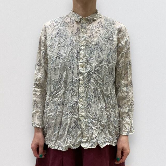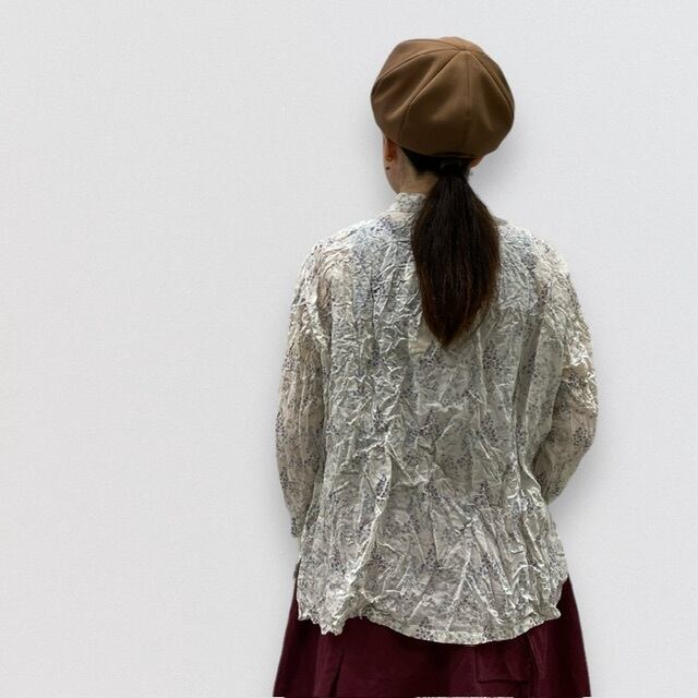スタンダードサイズのシャツカラーで、7分袖、両脇裾には小さなスリット入り。