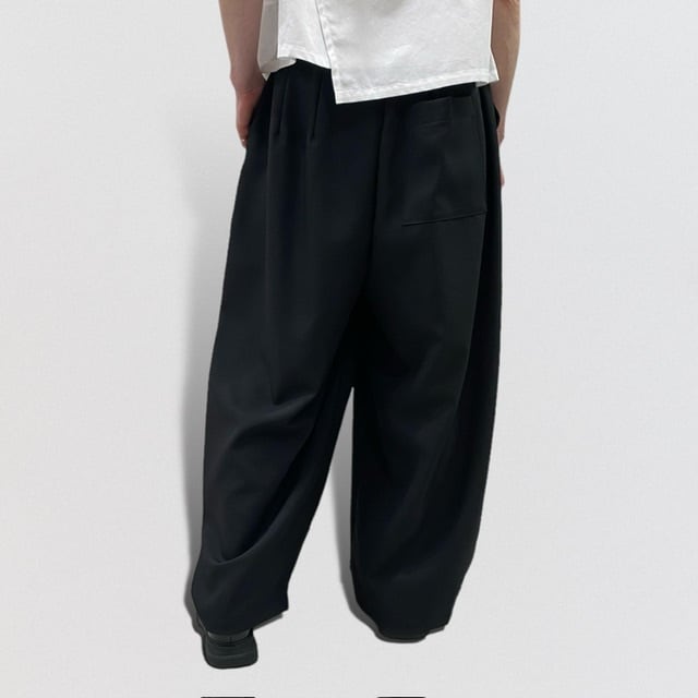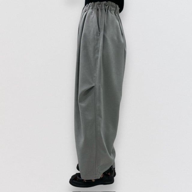 ボリューム感のあるゆとり幅でウエストは中紐が付いた穿きやすいデザインに仕上がっています。