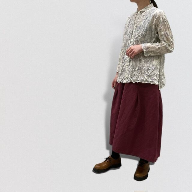 春夏はブラウスやTシャツと、秋冬は厚みのあるニットとも合わせていただきやすいデザインと素材感です。