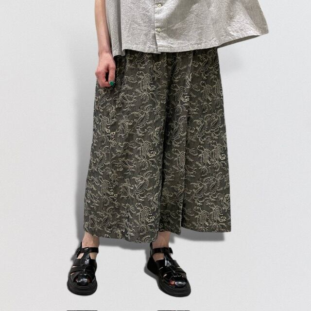 定番のサルエルパンツに、ペイズリージャガード柄の生地を使いました。