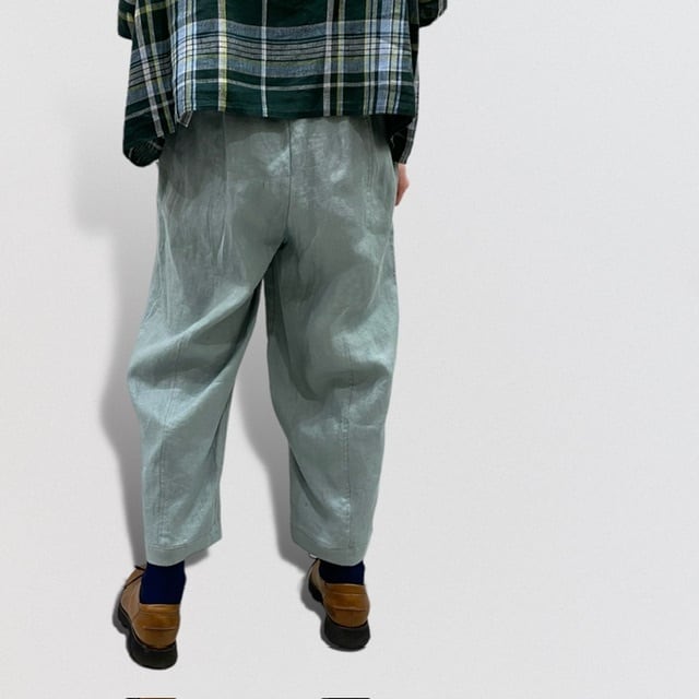 デニムもこの一種ですが、この丈夫な織り方に麻素材の重くならない糸番手を使うことで、夏らしい清涼感と軽さが加わった生地になります。