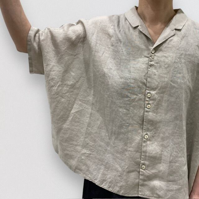 細番手の柔らかい肌触りが特徴のリネン地を使用した、ルーズシルエットのレギュラーシャツです。