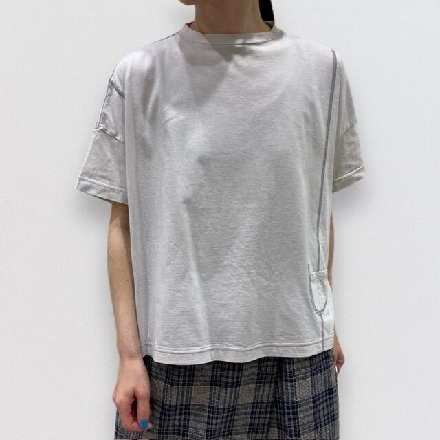 ボディカラーの同色系カラー糸を、3 本針裏振りに配しデザインポイント。