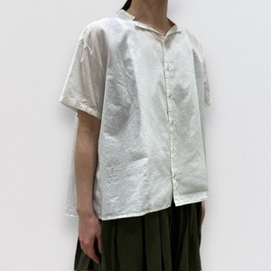 変形スタンドカラーの A ラインシルエットのシャツです。