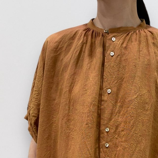 衿元と袖口に施されたギャザーデザインが、シンプルな中にも洗練された美しさを演出します。