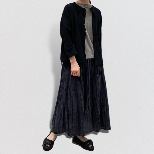 ブロックプリントが目を惹く、タックギャザースカートです。