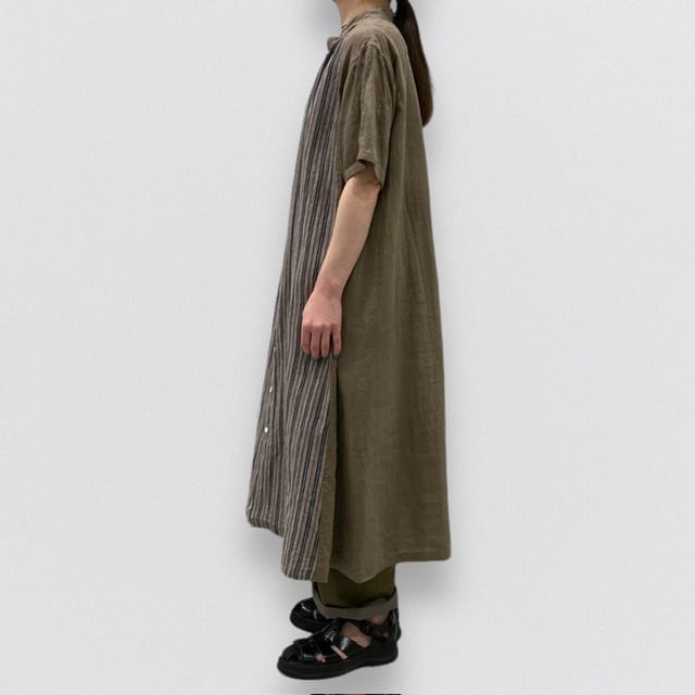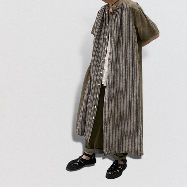 無地との切り替えやストライプ柄も相まって、Iラインが強調されたすっきりとした印象です。