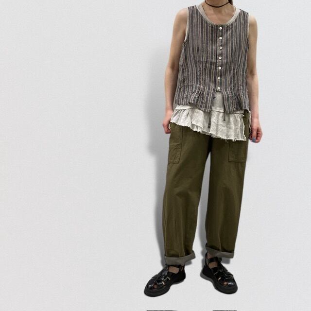 今では、Tシャツやブラウスに合わせたり、上から羽織りものを合わせたりと、ジレのように普段のコーディネートにプラスして、気軽に雰囲気を変えられます。