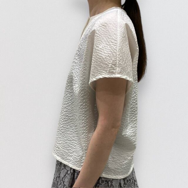 表面変化のある素材でミニマルなシャツに落とし込んだ1枚。