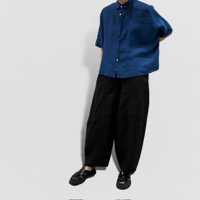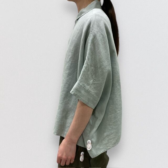 柔らかい肌触りが特徴のリネン地を使用した、ルーズシルエットのレギュラーシャツです。