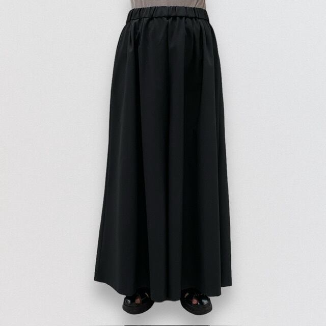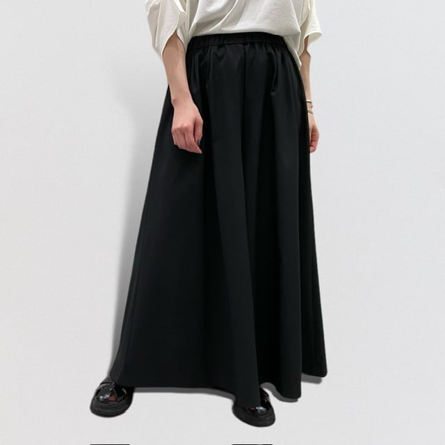 フレアラインのシルエットがまるでスカートのようなワイドパンツ。