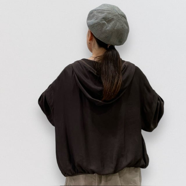 シアー感ありなトロンとした素材のきれいめパーカー。