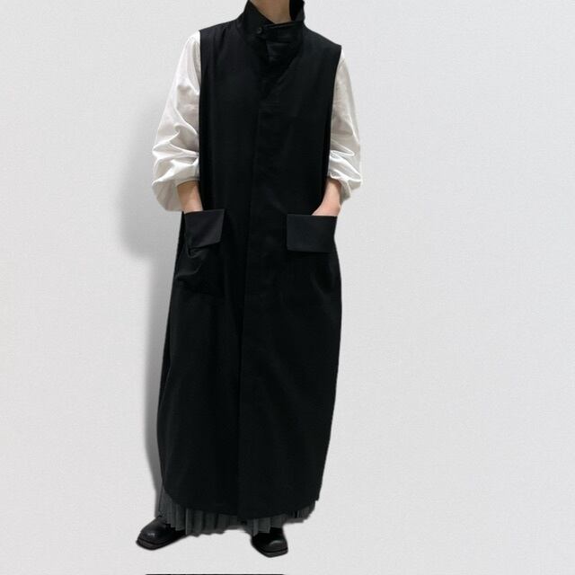 比翼仕立てでフロント面はスッキリとし、丸みのあるロング丈のシックなシルエットが印象的です。