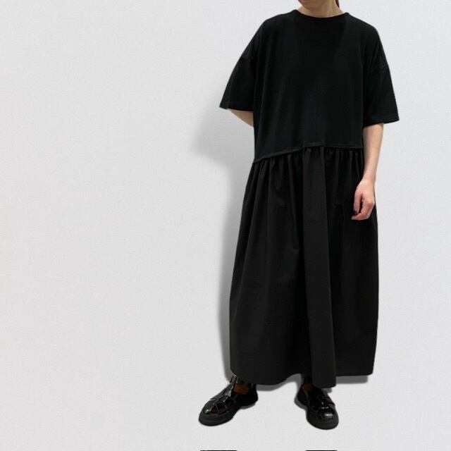 ウエスト切替で素材MIXにしたデザインワンピース。